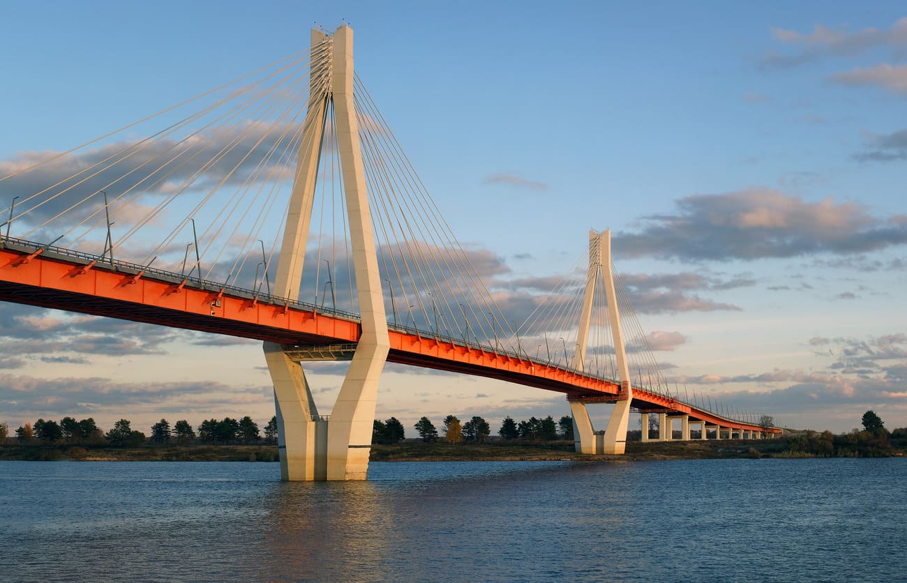 Когда готовился к поездке, первым делом, я хотел проехать по знаменитому Муромскому мосту. Тем более, что 1 августа 2013 года этот мост был назван самым красивым мостом России. К сожалению, собственных фотографий этого чуда инженерной мысли у меня нет, так как я сидел за рулем. Поэтому приходится довольствоваться фотками из google. Мост через р. Оку длиной 1,5 км и шириной 15 м был построен в 2009 г и соединяет Владимирскую (г. Муром) и Нижегородскую области (г. Навашино). Он действительно впечатляет, когда через него проезжаешь. Ничего подобного я до этого не встречал. После того как его проехали и въехали в город, вышла одна курьезная ситуация. Мы хотели найти кафешку, чтобы перекусить и посмотреть памятник Илье Муромцу. Посмотрели по google картам, что памятник находится почти на набережной и практически рядом как раз была какая-то кафешка. Забиваем точку, google прокладывает нам путь... и заводит во двор какой-то больницы. Я еще думаю "Что-то странно, что на набережную идет дорога через больницу? Ну может так надо, мало ли". Выехали на исходную, забили точку в Яндекс Картах и доехали куда нужно. Вот вам и импортозамещение) Но мост, конечно, шикарен!