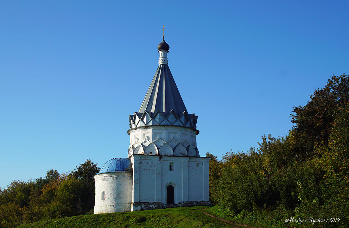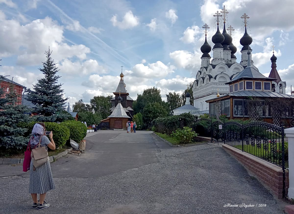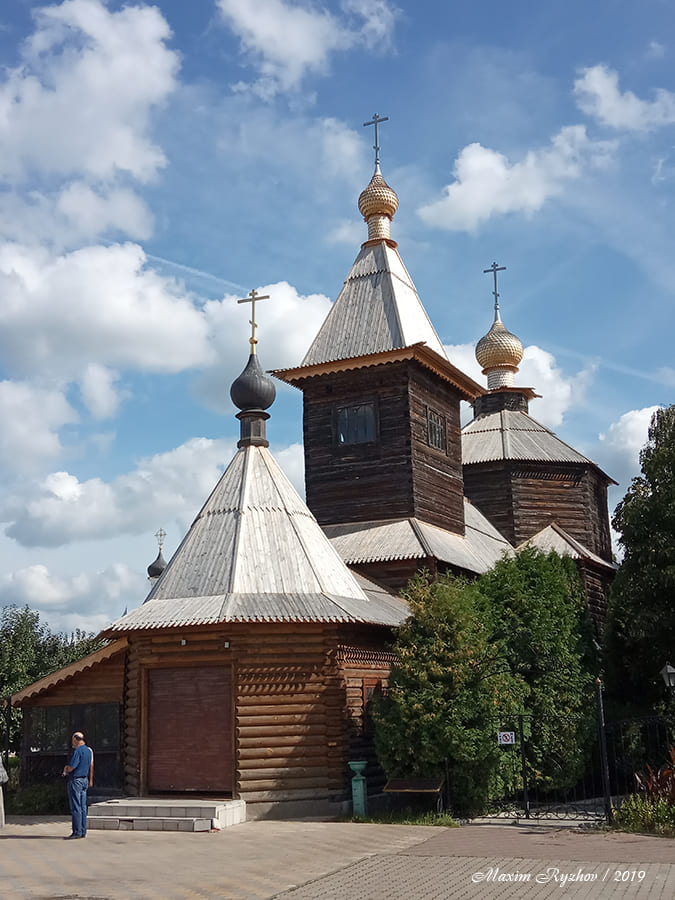 Церковь преподобного Сергия Радонежского, построенная в 1715. Изначально находилась в селе Красное, на территории Меленковского уезда Владимирской губернии. На территорию храма была перевезена в 1980 г. Интересно то, что черепица на куполах изготовлена из ольхи, хотя обычно такие вещи делают из дуба. Ну и вообще деревянные крыши, в наше время, довольно интересно и необычно смотрятся.