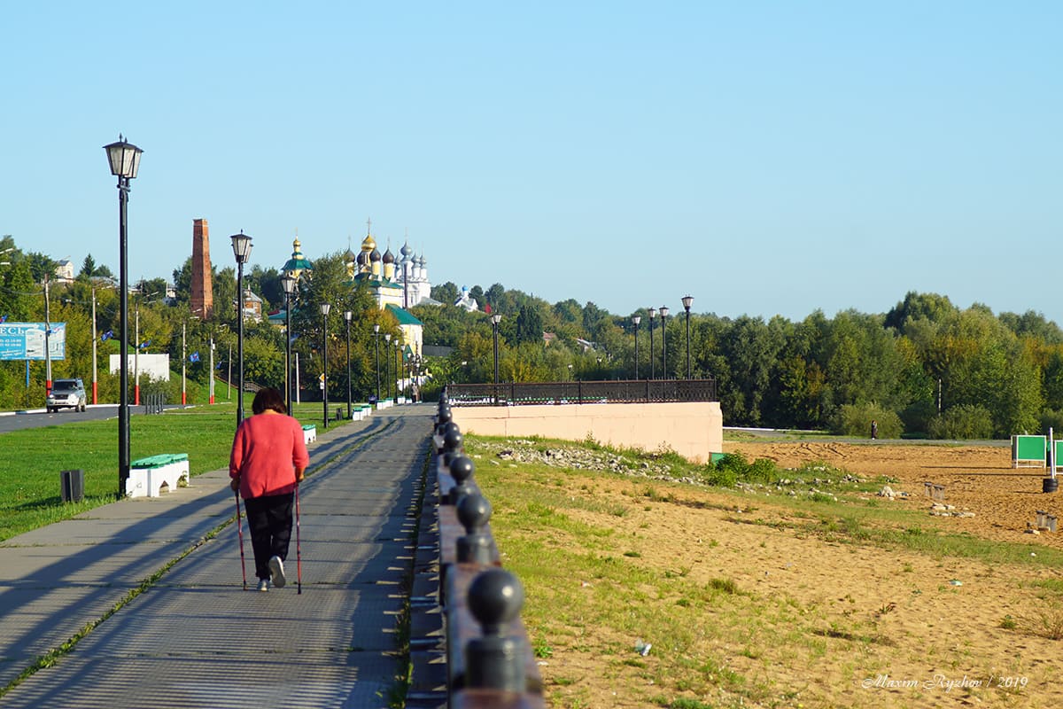 От памятника вниз ведет лестница, к набережной Оки. Собственно случайное фото, с видом на город. Справа набережная и тротуар для прогулок. Удивило, что на набережной лежат камни (на фото видно). Зачем они там нужны совершенно не понятно. Сколько храмов вы видите на фотографии? Подскажу - 4! А позади меня еще один стоит. Я сделал попытку дойти до всех этих храмов, но к сожалению она не увенчалась успехом. Со стороны набережной к ним сложно пройти - там небольшая речка, заросли травы и т.д. Тропинка есть, но я не решился там шастать. Не помню почему так решил.