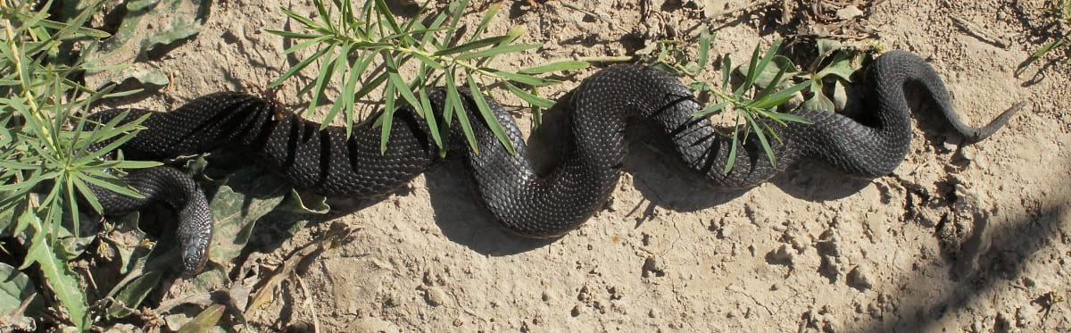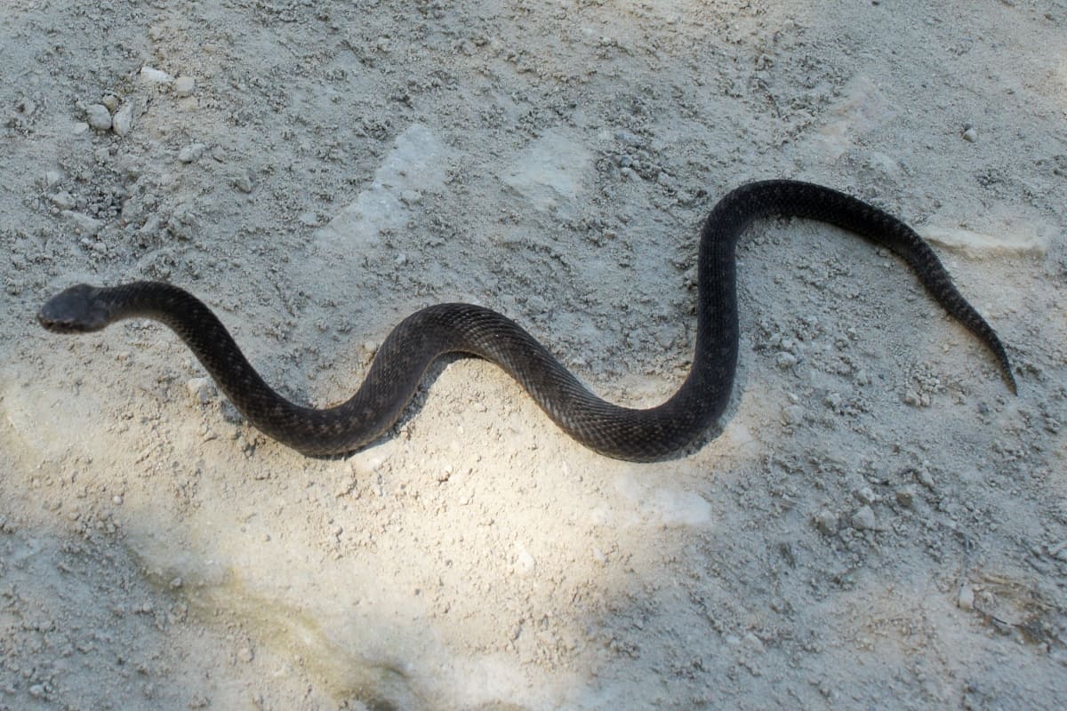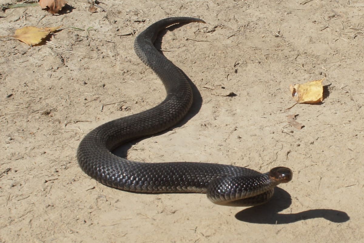 Впрочем, далеко не все крупные меланисты укладываются в такую строгую классификацию, а оттенки чёрного могут выглядеть по-разному в зависимости от типа дневного освещения и физиологического состояния змеи. Брюхо у всех меланистов чисто-чёрное, у коричневых особей – коричневое (у молодых почти однотонное, без пестроты в окраске (рис. 2, б), у особей покрупнее - неоднородное, слегка крапчатое).
