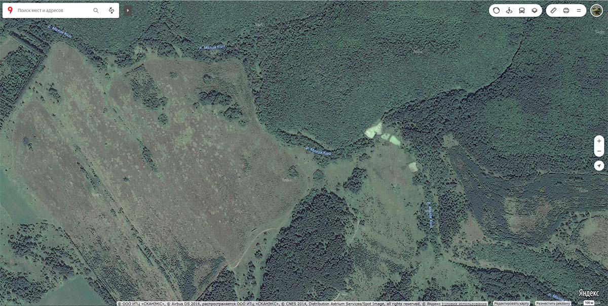 И так, недалеко от поселка Комсомольский есть одно уникальное место, которое скрыто от глаз, так как большинству туда относительно сложно попасть. Ничего сверхъестественного там нет, просто туда почти никто не ходит. На космических снимках хорошо видно, что там практически непроходимый лес. На самом деле там есть только одна дорога, если идти пешком. И то машину нужно оставлять примерно за 1,5 - 2 км (крутой склон, заваленный упавшими деревьями). Правда, пару раз видел там охотниках на квадроциклах - гоняли по полю, слева от водоемов. Чего они там искали мне совершено не понятно. А так весь народ, которому хватает смелости и терпения туда добраться, ходит в "кармашке" правее водоемов - очень грибное место (грузди, подосиновики, подберезовики, поддубовики, рыжики и свинушки). Про эти водоемчики я немного рассказывал в посте про бобров.