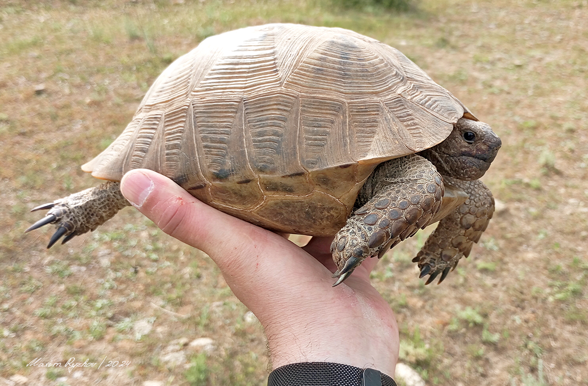 Еще один вид пресмыкающихся, который встретился нам во время поездки в Республику Дагестан, в мае 2023 г. Единственный вид сухопутных черепах, который встречается на территории современной России. По сравнению со среднеазиатской (Agrionemys horsfieldii), которые встречаются в соседнем Казахстане, средиземноморская крупнее и выглядит массивнее. Но, это мое личное мнение.