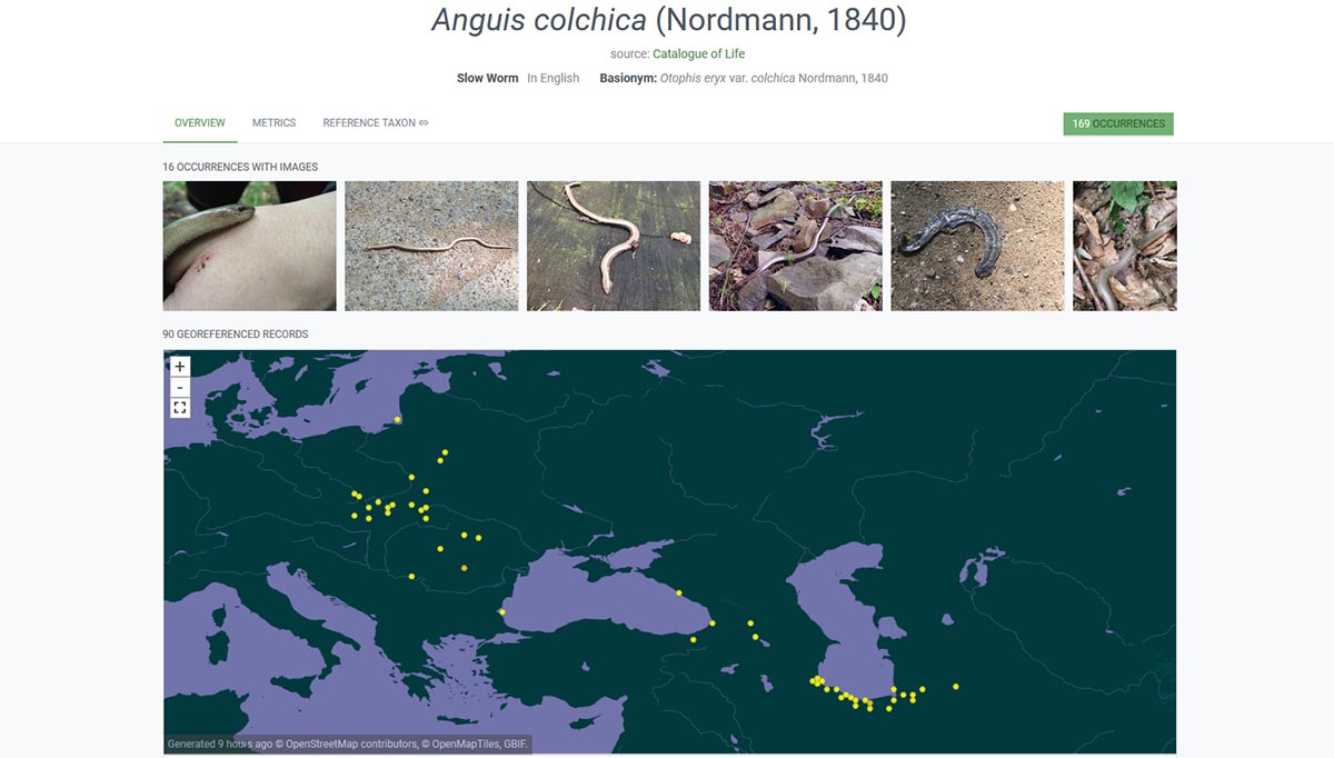 Чтобы быть объективным, посмотрел точки по Anguis colchica на GBIF (Global Biodiversity Information Facility) - всего 169 точек, среди которых, опять та же самая многострадальная точка с Краснодарского края. Да и большинство точек - это литературные данные, на основе герпетологических коллекций и записанных под именем Anguis fragilis subsp. colchicus.