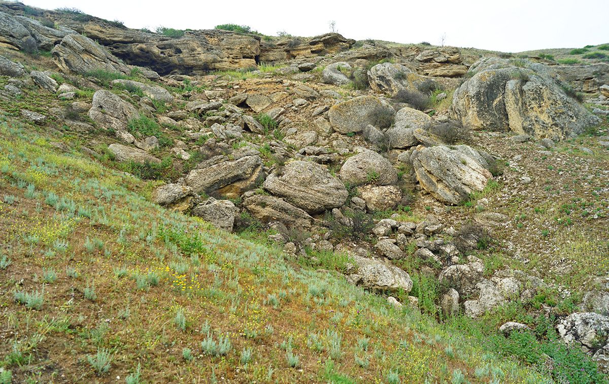 И второй интересный момент - это биотоп, где мы поймали этого удавчика. Известно, что они придерживаются придерживаются глинистых и каменистых почв. И если сравнивать с биотопом, где его нашли в 2015, то это как два совершенно два разных мира. Если в Калмыкии - это практически голая степь, с глинистой почвой. То, в Дагестане он сидит под камнями и ползает среди них. Что вполне подтверждает литературные данные - «придерживается полынно-солянковых полупустынь и каменистых склонов, где его находили в промоинах и трещинах глинистого грунта, а также среди нагромождений камней» (Мазанаева, Султанова, 2012). Но, вот что противоречит литературным данным, так это то, что он встретился нам в светлое время суток, а не в сумерках или ночью.