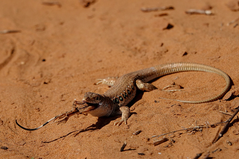 Всегда думал, что мелкие ящерицы, как правило питаются различными беспозвоночными. Хотя в литературе встречается упоминание, что быстрая ящурка (Eremias velox) может нападать на других мелких ящериц. Но, одно дело, когда это литературные данные и совсем другое дело, когда видишь непосредственные доказательства этого.