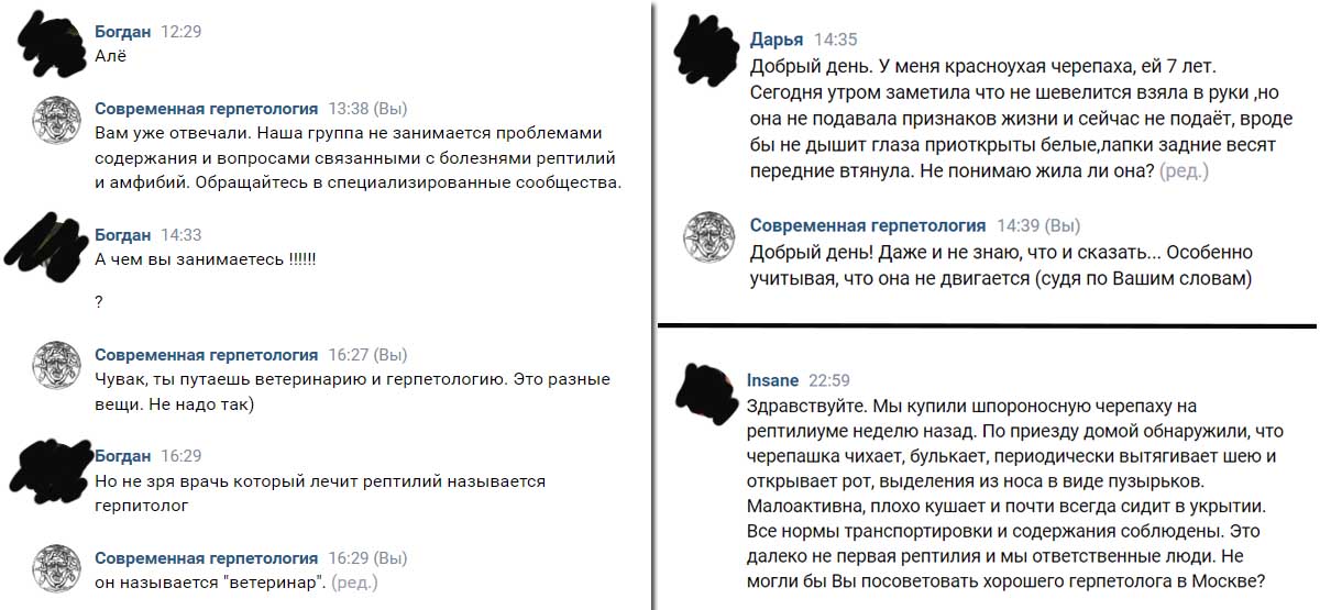 Несколько скринов переписки из сообщений группы "Современная герпетология"